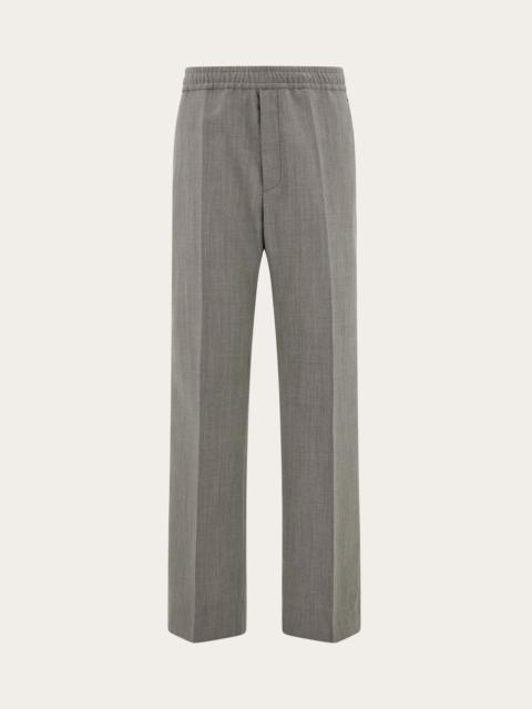 Classic codes full of casual contaminations define the new collection, and this trouser with an elasticated drawstring waist is proof of this. The fit is informal with a soft leg, accentuated by the ironed crease, which gives the look a tailored note. Made from wool, silk and linen, it features a concealed zip, French pockets on the sides and a welt pocket on the back. - Composition: 64 % virgin wool, 25 % silk, 10 % linen and 1 % elastane - Made in ITALY - Product code: 144341 780823