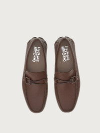 The sophisticated driving moccasin in hammered calf leather is chic and stylish. The braided leather lace across the upper is held by a single Gancini. Set on a rubber sole, the Tubular construction is used to attach the upper. This is a hand crafted technique involving a series of defined processes used to offer a lightweight feel and a refined finish. - Composition: hammered calfskin - Made in ITALY - Product code: 02B796 753176