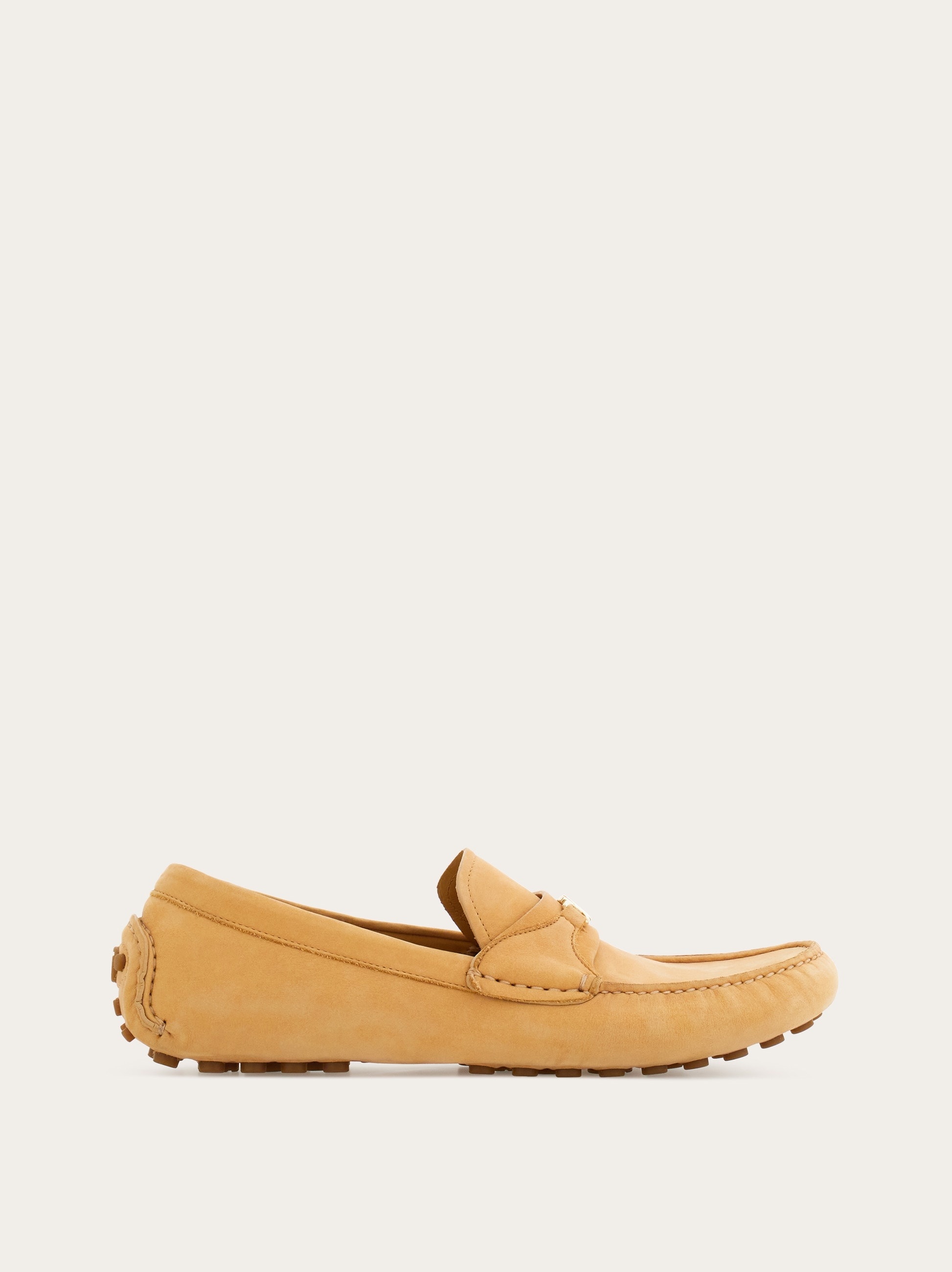 Sophisticated take on the driver loafer, treated by artisans to obtain a rich, deep hue. A leather strip across the instep holds a mini Gancio bit, and the sole is covered with a custom tread. This shoe is made with the "Tubular" technique, an exclusive method applied by high end shoemakers, whereby the sole is hand-sewn to ensure a supple, flexible finish. - Composition: nubuck - Made in ITALY - Product code: 021654 768057