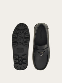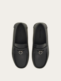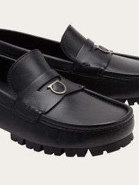 The Gancio that sits in the penny slot of this new Ferragamo loafer is inspired by a paperclip. New shapes and dimensions give a bold look to the calfskin upper with raised stitching and textbook saddle across the instep. The light flexible rubber sole has a chunky tread for a gritty look. This shoe is made with the "Tubular" technique, an exclusive method applied by high end shoemakers, whereby the sole is hand-sewn to ensure a supple, flexible finish. - Composition: calfskin - Made in ITALY - Product code: 023610 772480