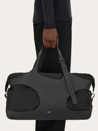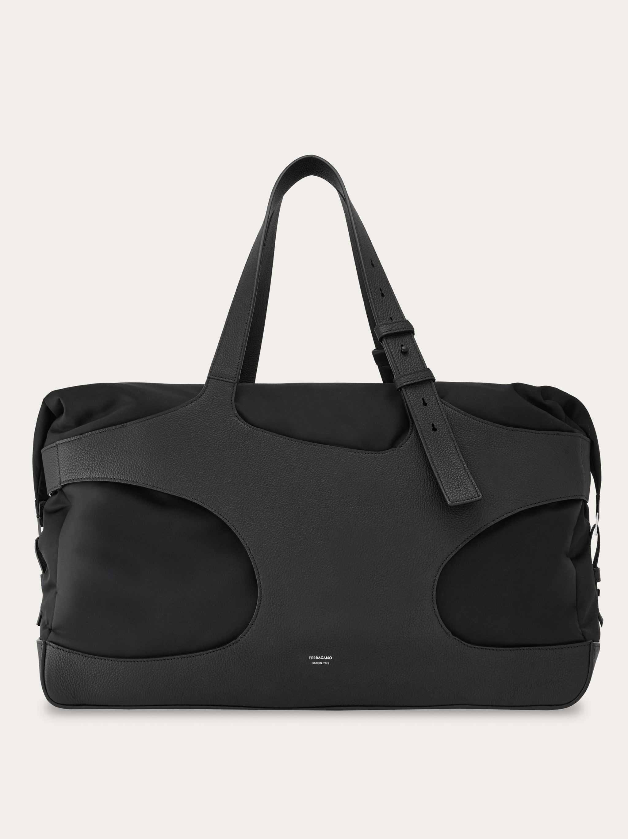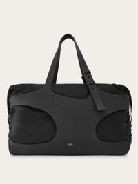 Avant-garde lines and innovative material pairings define this new duffel bag from the Cut Out collection. The exterior shell is crafted from matte-finish hammered calfskin, while the interior comes in compact and padded technical fabric, for surprising material contrast. The lines are soft, with adjustable handles, a zip fastening and side buckles that allow you to adjust the size. Perfect for a business trip or weekend getaway. - height 31.0 CM / 12.2 IN length 48.0 CM / 18.8 IN width 25.0 CM / 9.8 IN - Composition: hammered calfskin and fabric - Product code: 241477 770083 - Made in ITALY