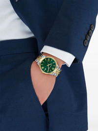 Pair Duo 40mm Highlights - 40mm - Gold plated stainless steel case - Quartz movement - Round face - Roman numeral dial - Gancini plaque - Index hands - Screw-down crown - Stainless steel and gold plated gold link bracelet - Deployant-clasp fastening - Water resistance up to 30m/3 atm Imported Composition Yellow Gold Plated Stainless Steel 100%, stainless steel 100%, Sapphire Crystal 100% SIZE & FIT Measurement DIAMETER 1.57 in(4 cm)