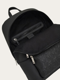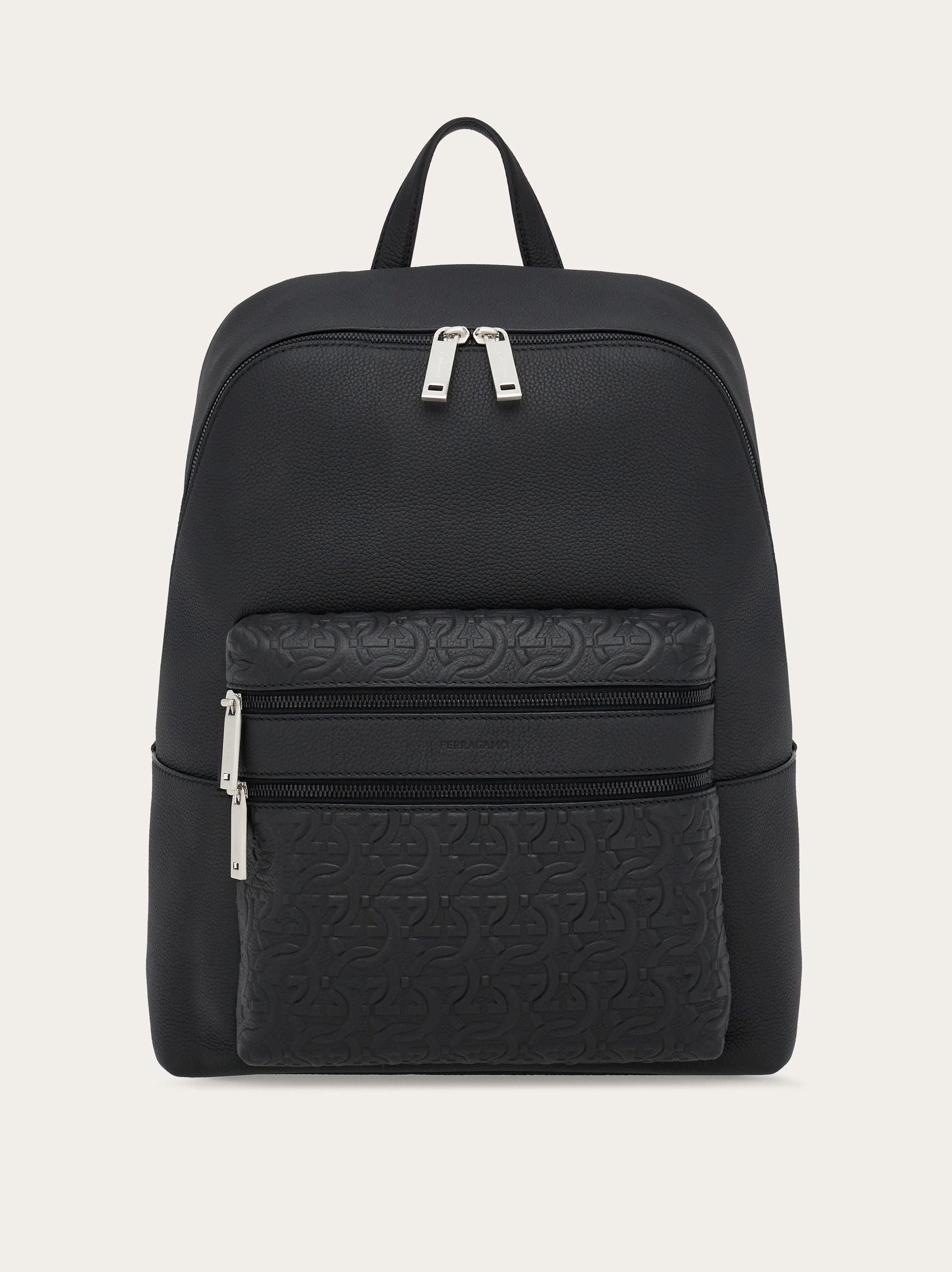 This contemporary backpack has a front zip pocket with an embossed Gancio pattern. The spacious interior features a padded slot for electronic devices. Custom metallic zips meet at the top. The back and straps are padded with breathable technical fabric. - height 15.7 IN length 11.8 IN width 5.1 IN - Composition: hammered and embossed calfskin - Made in ITALY - Product code: 241366 763372