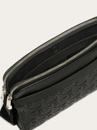 This versatile crossbody bag comes crafted in hammered calfskin with Gancini-patterned embossing adorning the front panel. The structure features two compartments with metal zip fastening and a central flat pocket secured by a magnet, perfect for holding personal items. The adjustable jacquard tape shoulder strap flaunts tonal lettering embellishment. - height 7.2 IN length 9.8 IN width 1.7 IN - Composition: hammered calfskin - Made in ITALY - Product code: 241643 775264