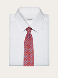 A majestic tiger peers over the top of a Gancio outline on this silk tie. The pattern is refined yet playful, creative and sophisticated. - Composition: 100% silk - Made in ITALY - Product code: 351253 784154