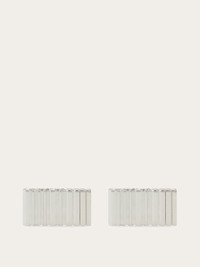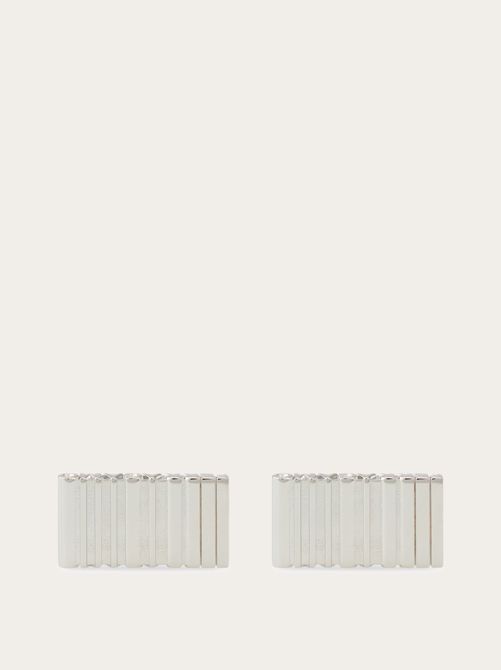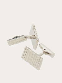 New proposal of metal cufflinks with a palladium finish, composed of logo lettering that creates a play of irregular lines on the flat part. Sophisticated and metropolitan, they are the touch of personality for elegant outfits. - Composition: brass - Made in ITALY - Product code: 770377 780296