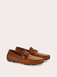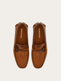Casual yet refined, this driver loafer is made from supple calf leather, artisanally aged to create a rich, deep shade. The signature Gancini buckle in a lacquered finish is enriched with two-tone woven detailing, while the rubber sole with a custom tread pattern ensures a dynamic stride. It's crafted using the tubular construction method, which involves meticulous hand-stitching and assembly, resulting in a flexible and lightweight silhouette. - Composition: calfskin - Made in ITALY - Product code: 02B796 786874