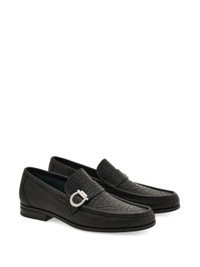 black calfskin leather raised stitching squared toe Gancini buckle detail textured leather - Color: BLACK - Made in: Italy - Designer Style ID: 02A056 0788877 3E NERO Composition and care Outer Composition Calfskin: 100.0%, Lining Composition Calf Leather: 100.0%, Sole Composition Calf Leather: 100.0%