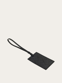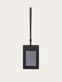 New badge holder in hammered calfskin, featuring a windowed pocket for maximum versatility. The back panel is decorated with the Ferragamo monogram pattern on coated fabric. A tonal strap allows it to be worn around the neck. - Composition: hammered calfskin and coated fabric - Made in ITALY - Product code: 661612 781798