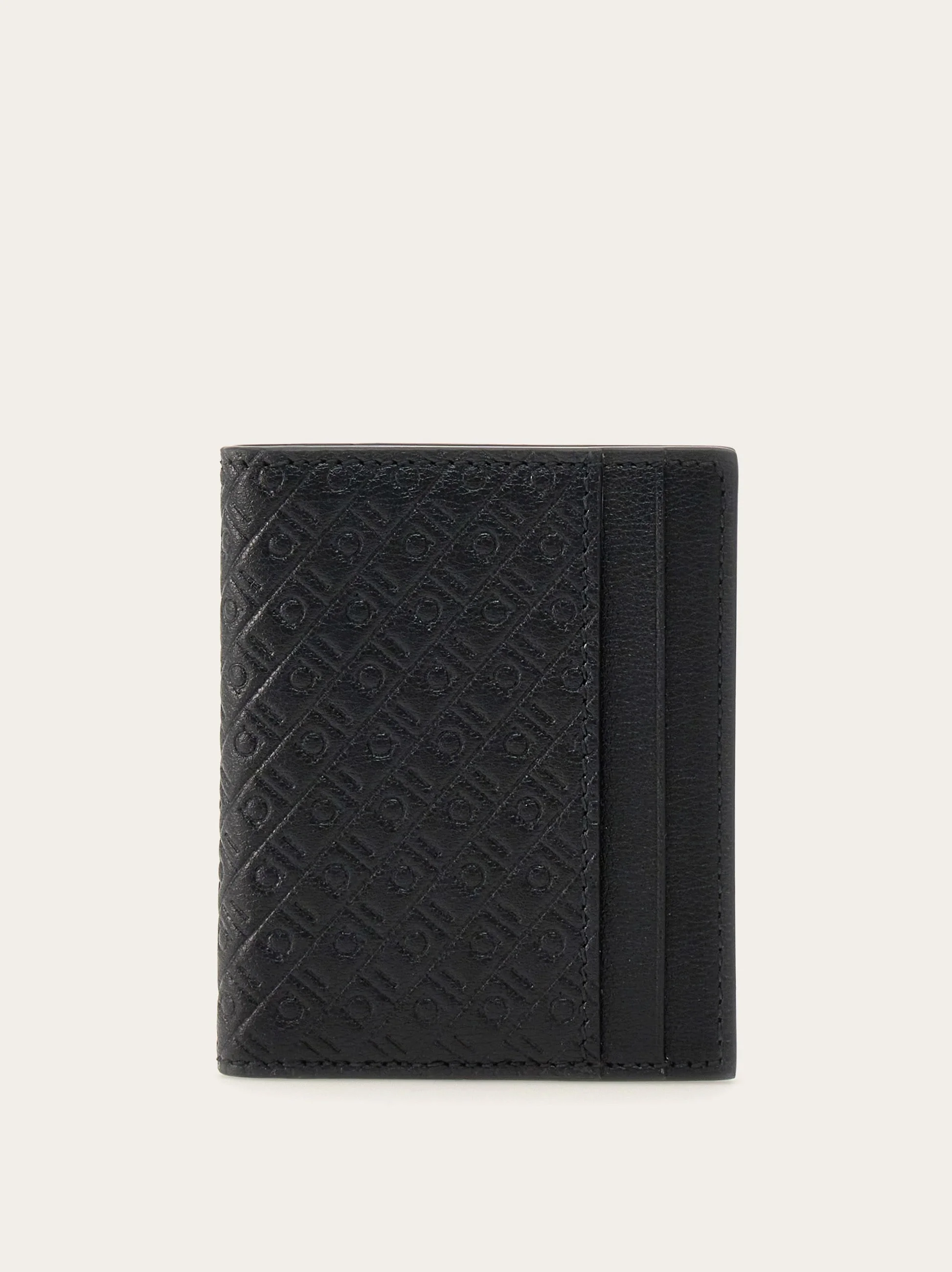 New credit card holder with book-like construction, smooth calfskin interior and outer dials with delicate embossed Ferragamo monogram design. Inside and back slots ensure perfect functionality. - height 6.2 IN length 3.7 IN - Composition: smooth and embossed calfskin - Made in ITALY - Product code: 661570 780074