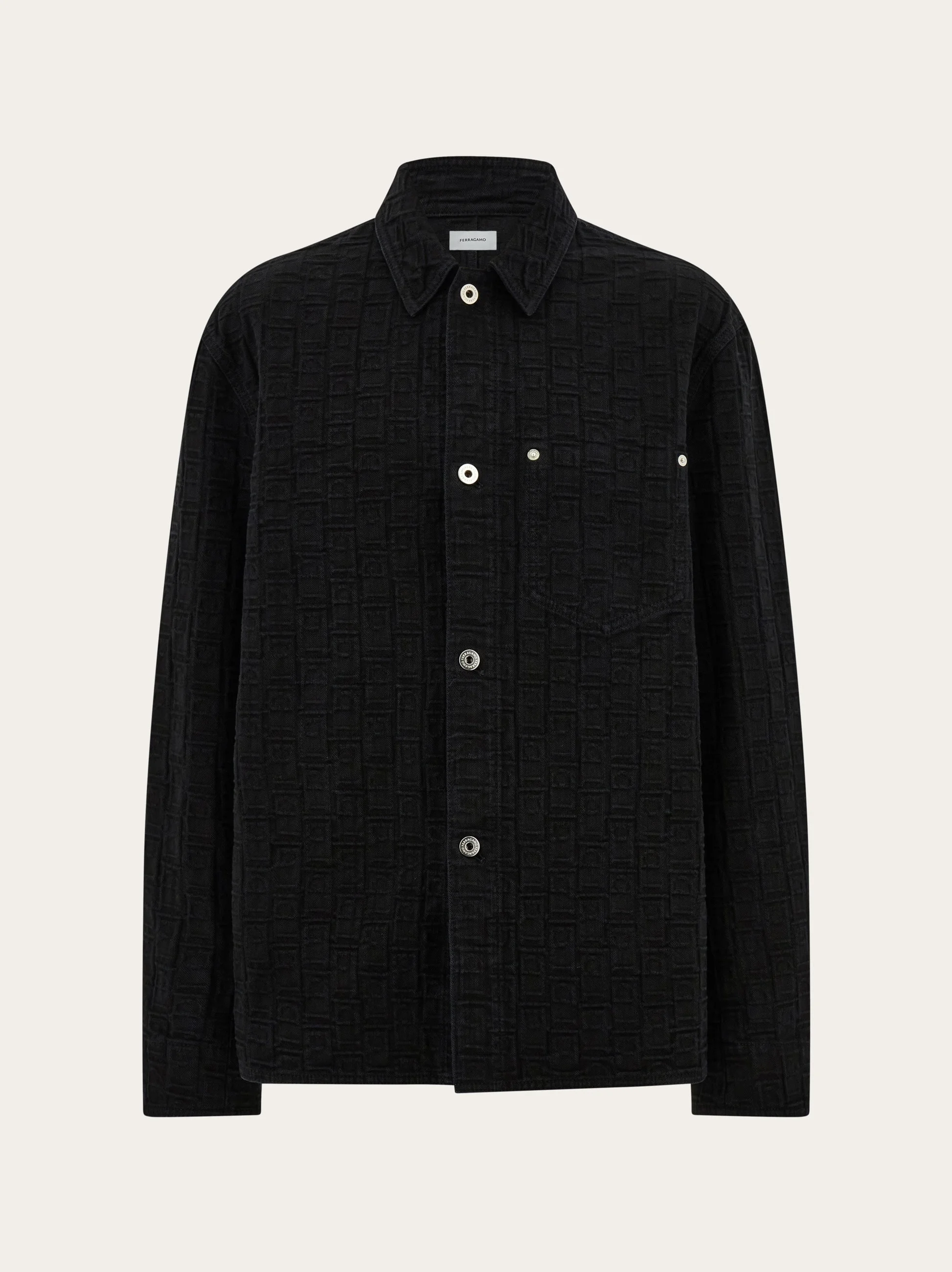 Multi purpose cotton drill overshirt driven by the new aesthetic vision of Maximilian Davis. A skillful mix of classic models and new contemporary cuts, it is detailed all over with a tonal Ferragamo monogram, and the central back seam with double stitching confirms an urban appeal. - Composition: 100% cotton - Made in ITALY - Product code: 144436 782879