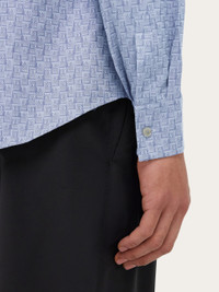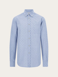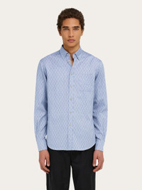 Regular fit shirt with a button-down collar, meticulously crafted from Oxford organic cotton with the Ferragamo monogram motif. Mother-of-pearl buttons add a refined touch to the model, completed with a squared chest pocket. - Composition: 100% organic cotton - Made in ITALY - Product code: 144831 786619