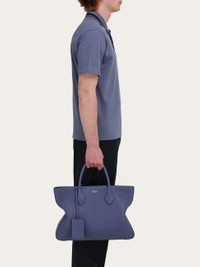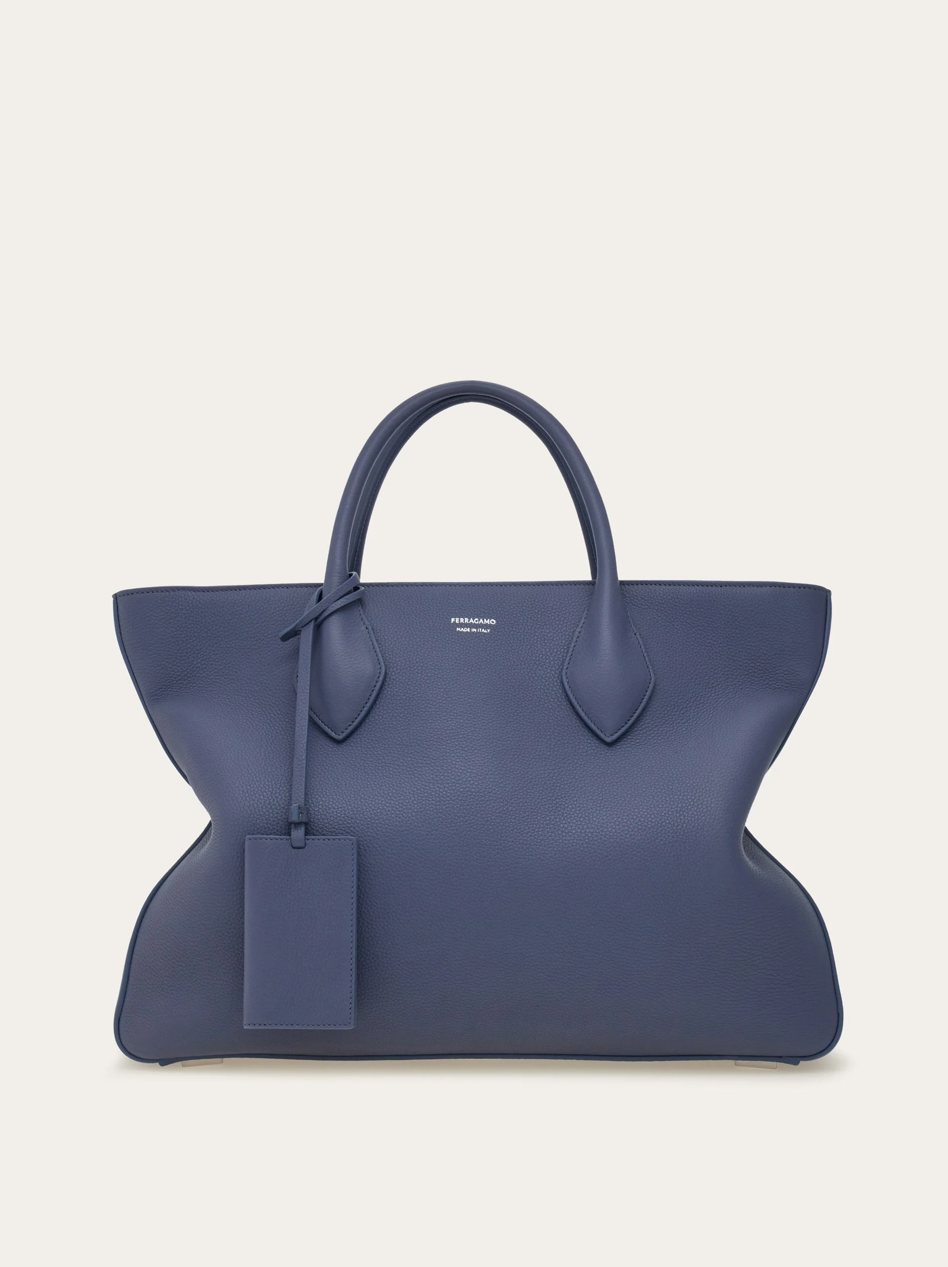 Medium, deconstructed tote with folded sides that draw the outline of a star. The hammered calfskin leather echoes a luxurious feel, with a roomy lined interior with zip pocket for perfect organization of personal effects. An address tag with key ring charm dangle from the chic top handles, and the removable jacquard strap adds an iconic twist. - height 11.8 IN length 16.1 IN width 3.5 IN - Composition: hammered calfskin - Made in ITALY - Product code: 241753 784726
