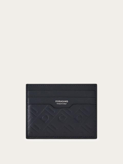 An iconic twist on the classic men’s wallet, featuring embossed Ferragamo Monogram panels for a signature touch. Inside, a well-organized layout offers compartments, flat pockets, and card slots for effortless functionality. - height 3.3 IN length 4.3 IN - Composition: calfskin - Made in ITALY - Product code: 661641 783383