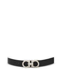 topstitched gancini buckle belt Highlights - Black - Topstitched strap - Gancini buckle - Embossed design - Adjustable length Made in Italy Composition Outer: CALFSKIN 100%