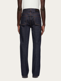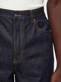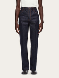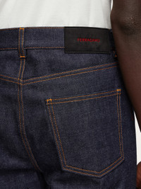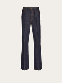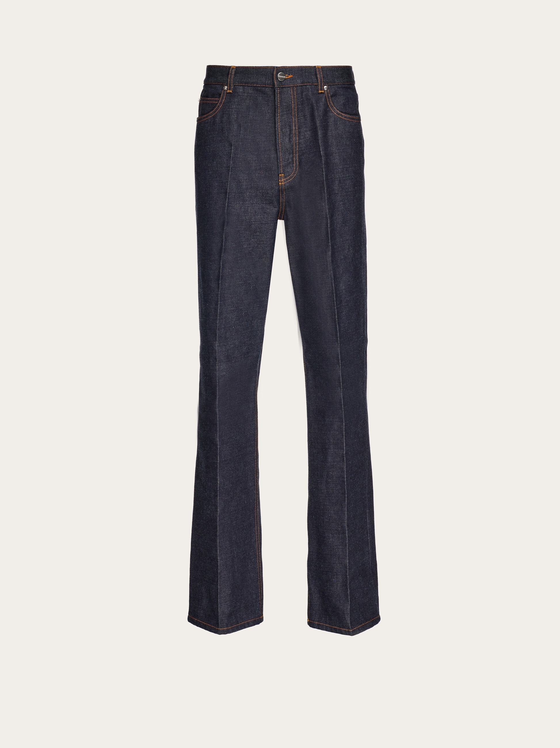 Cult pieces revised by contemporary creatives: five pocket trouser made of pure cotton denim. The fit is regular, with a straight leg accentuated by ironed pleats for a sartorial finish. Textbook details include rounded pockets on the front, contrasting stitching and custom metal rivets. - Composition: 100% cotton - Made in ITALY - Product code: 143676 771171