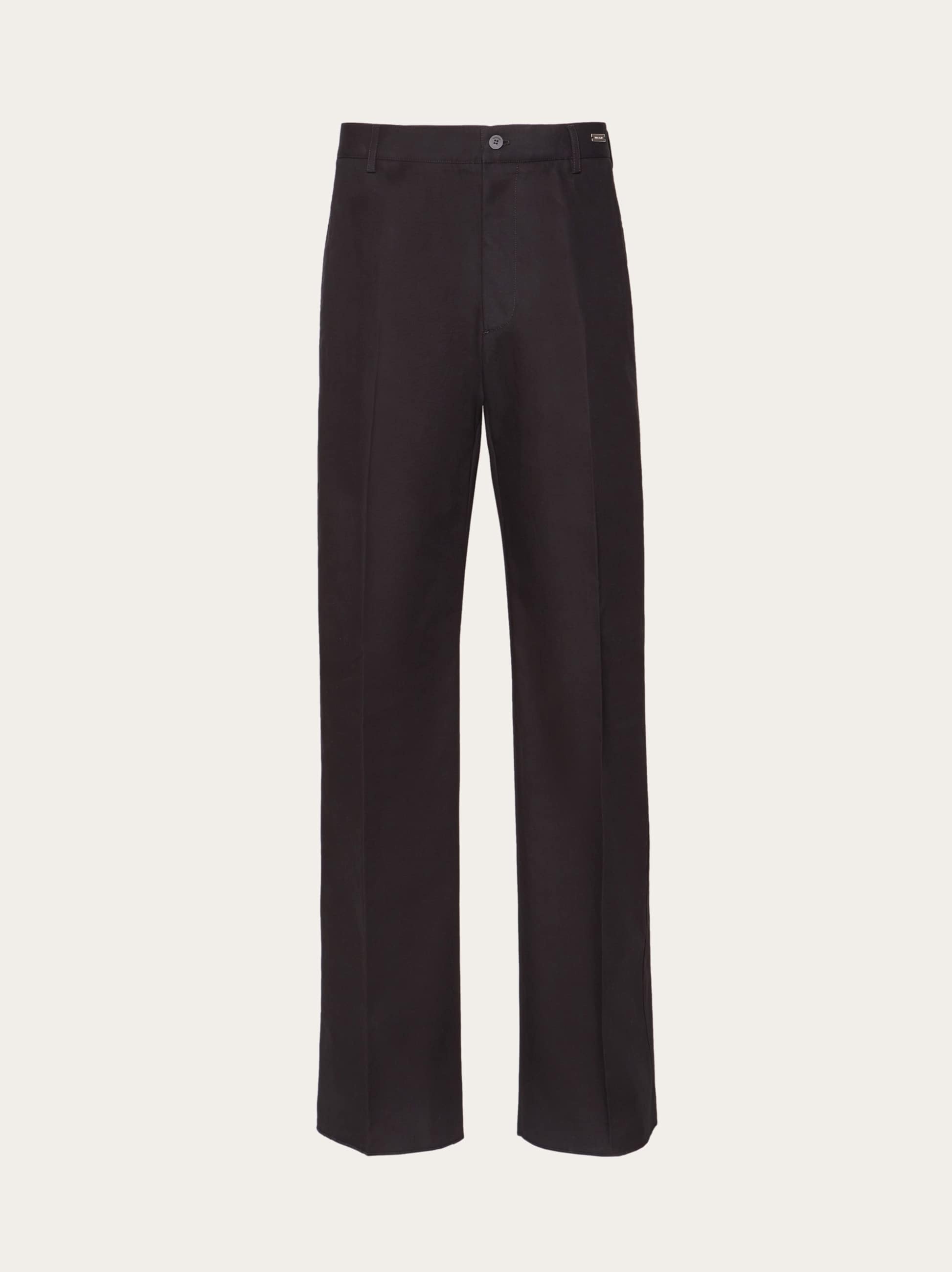 Fashion forward chinos made of brushed cotton canvas with a relaxed flare on the leg. The ironed crease along the front and back confirms a contemporary feel, with belt loops at the waist band, visible button, and zip fastening. Inset side pockets and rear button up welt pockets. - Composition: 100% cotton - Made in ITALY - Product code: 143812 770992