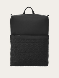 Hands-free urban mobility: new soft and exquisite hammered calfskin backpack adorned with a Gancini-embossed front panel. The construction is extremely functional with a large, organized compartment on the interior with space for electronic devices. The zipped front pockets of different sizes ensure space for all your personal belongings. The back pad and straps come in breathable padded technical fabric, paired with a strap for securing the backpack to a trolley. - height 15.7 IN length 11.4 IN width 5.1 IN - Composition: embossed and hammered calfskin - Made in ITALY - Product code: 241475 769505