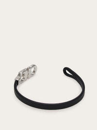 Essential style, minimal chic. Leather bracelet with a simple string and an iconic silhouette for the clasp: two matching Gancini are crossed by a leather knot, creating and asymmetrical, sophisticated flavor. Max length 19cm. - Composition: calfskin and brass - Size 19 - Made in ITALY - Product code: 774547 676059