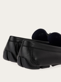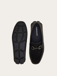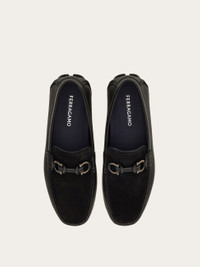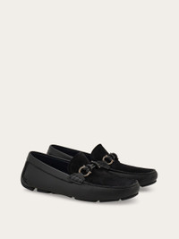 A refined city essential: this driver loafer is crafted from a sumptuous mix of calf leather and suede. Notice the leather Gancini buckle with an intricately knotted tubular design and the flexible rubber sole finished with custom tread. The tubular construction method, which involves meticulous hand-stitching and assembly, ensures a flexible and lightweight silhouette. - Composition: calfskin and suede calfskin - Made in ITALY - Product code: 02A010 784296