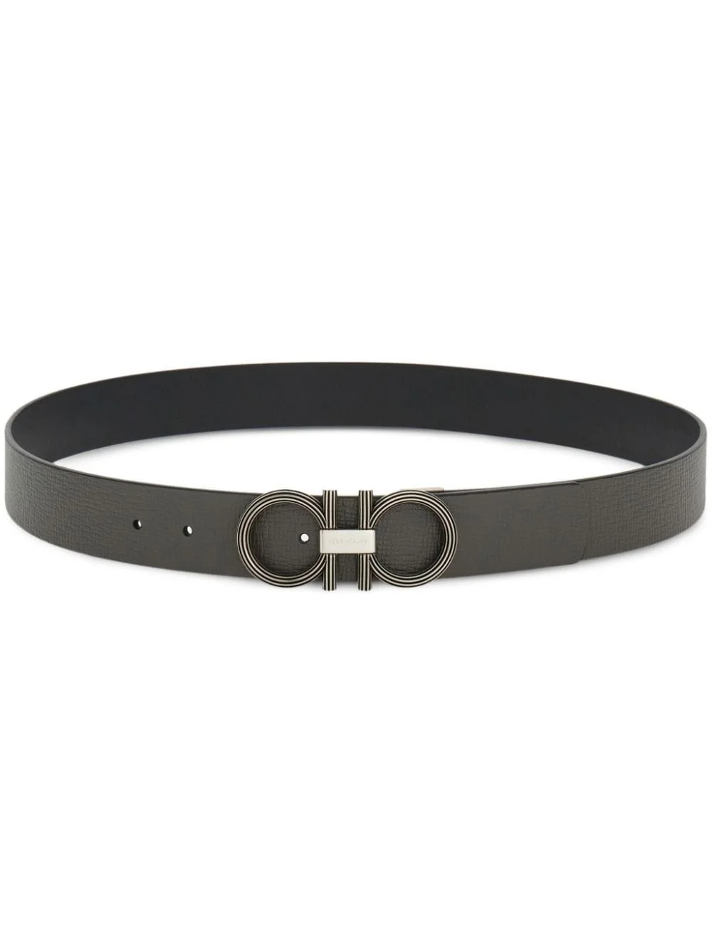 Gancini-buckle leather belt Highlights - Dark grey - Calf leather - Cracked texture - Gancini buckle - Silver-tone hardware - Adjustable fit Made in Italy Composition Outer: CALFSKIN 100% SIZE & FIT Measurement Maximum Length 39.37 in(100 cm) Minimum Length 35.43 in(90 cm) WIDTH 1.37 in(3.5 cm)