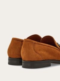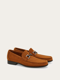 The classic loafer with a rounded profile and apron-toe seams. It features the iconic Gancini buckle, mixing the burnished and lacquered finishes for a tactile contrast, and a flexible rubber sole. It's crafted using the tubular construction method, which involves meticulous hand-stitching and assembly, resulting in a flexible and lightweight silhouette. - Composition: nubuck - Made in ITALY - Product code: 029392 784284