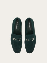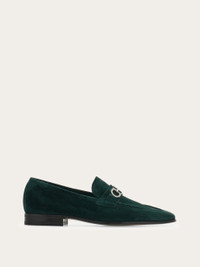 Elegant and understated, this loafer features a softly squared almond toe accented with subtle stitch detailing. Note the signature Gancini buckle in a ruthenium tone across the vamp. Flexible rubber sole. - Composition: suede calfskin - Made in ITALY - Product code: 02A060 784424