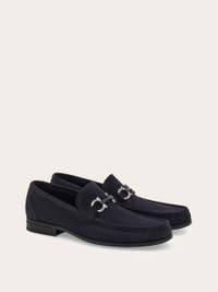The classic loafer with a rounded profile and apron-toe seams. It features the iconic Gancini buckle, mixing the burnished and lacquered finishes for a tactile contrast, and a flexible rubber sole. It's crafted using the tubular construction method, which involves meticulous hand-stitching and assembly, resulting in a flexible and lightweight silhouette. - Composition: nubuck - Made in ITALY - Product code: 029392 784285