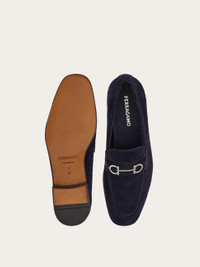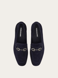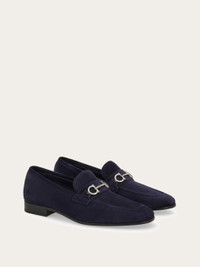 Elegant and understated, this loafer features a softly squared almond toe accented with subtle stitch detailing. Note the signature Gancini buckle in a ruthenium tone across the vamp. Flexible rubber sole. - Composition: suede calfskin - Made in ITALY - Product code: 02A060 784425