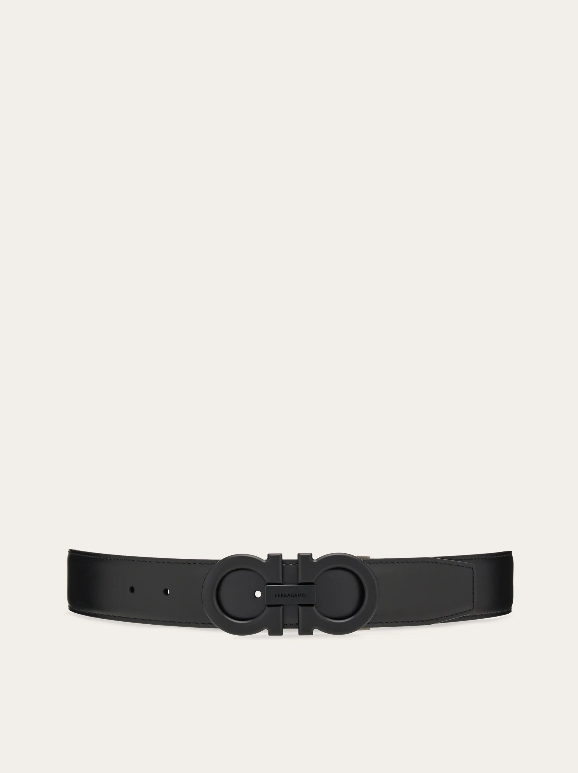 This belt has a different shades on each side, to offer versatile styling. The Gancini buckle with a painted finish adds a contemporary touch to any look. The adjustable length allows for a more personalized fit and style. We invite you to check our size guide for more information. - height 1.3 IN - Composition: calfskin - Made in ITALY - Product code: 679710 688772