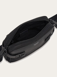 A new take on the beloved messenger bag, made of technical fabric and luxurious hammered calfskin. The construction features a roomy interior with custom metal zip and a back slot pocket. Gancio buckles fasten at the front, and the custom jacquard strap is adjustable in length. - height 6.2 IN length 9.4 IN width 2.3 IN - Composition: fabric and hammered calfskin - Made in ITALY - Product code: 241787 786274