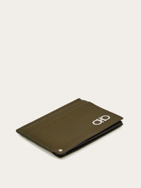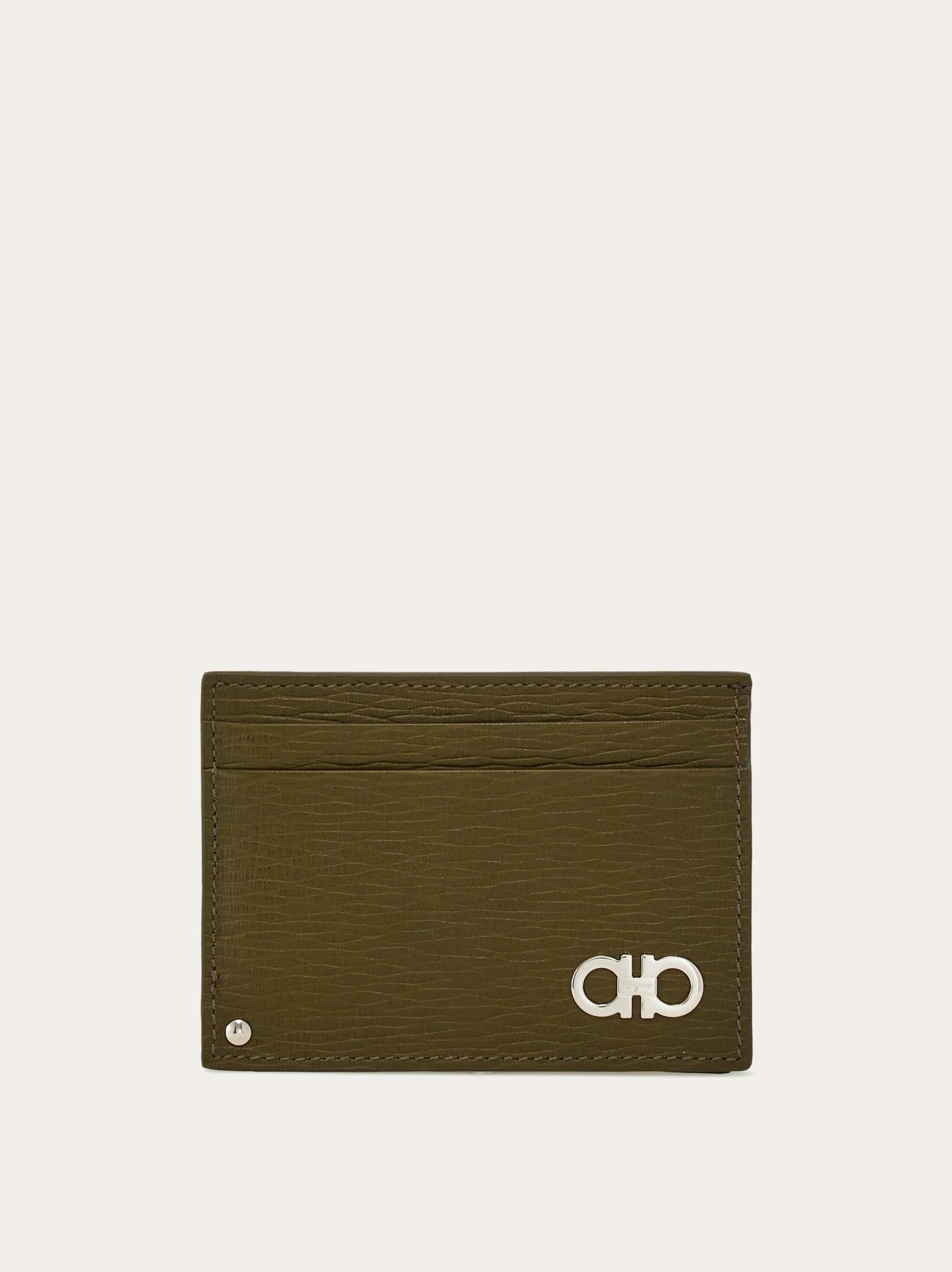 Exuding a sophisticated allure, this compact card holder is crafted from hammered calfskin with a delicate metallic finish. Complete with a tonal matte Gancini logo and a small pull-out ID holder insert. - height 3.1 IN length 3.9 IN - Composition: hammered calfskin - Made in ITALY - Product code: 66A061 779738