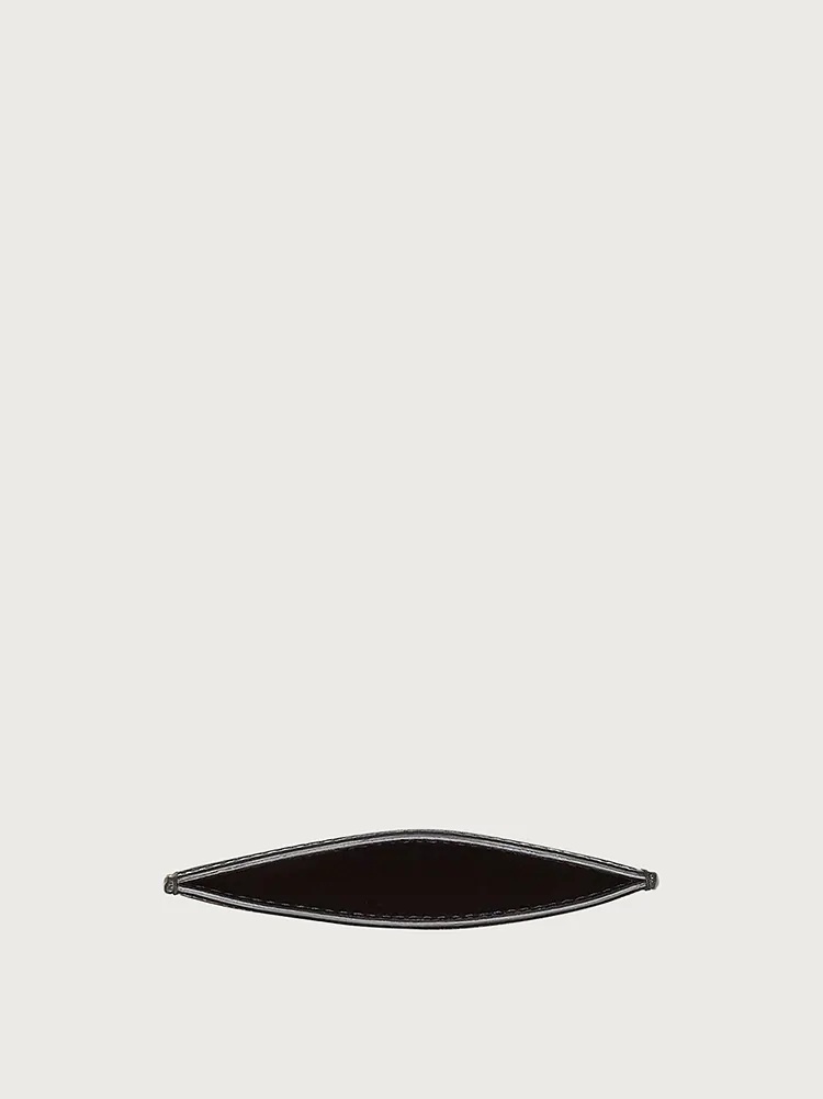 Extra compact, ultra chic, this credit card holder has a minimal look with slots on both sides. Made of hammered calf leather, it has metal palladium finish corners with Gancini inside for an iconic touch of luxury. - Composition: hammered calf leather - Made In ITALY