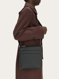 Geometric lines and fine finishes distinguish this new crossbody bag with embossed Gancini insert on the front. Crafted from soft, exquisite hammered calfskin, it features a front pocket, a zip fastening and an adjustable technical fabric strap so it can be worn over the shoulder or crossbody. - height 9.8 IN length 9.4 IN width 1.9 IN - Composition: embossed and hammered calfskin - Made in ITALY - Product code: 241484 769480