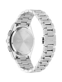 Vega Upper East Chrono 42mm Highlights - 42mm - Stainless steel case - Quartz movement - Round face - Baton dial - Baton hands - Gancini plaque - Chronograph counters - Date indication - Sapphire-crystal glass - Two chronograph pushers - Screw-down crown - Stainless steel link bracelet - Folding clasp Imported Composition stainless steel 100%, Sapphire Crystal 100% SIZE & FIT Measurement DIAMETER 1.65 in(4.2 cm)