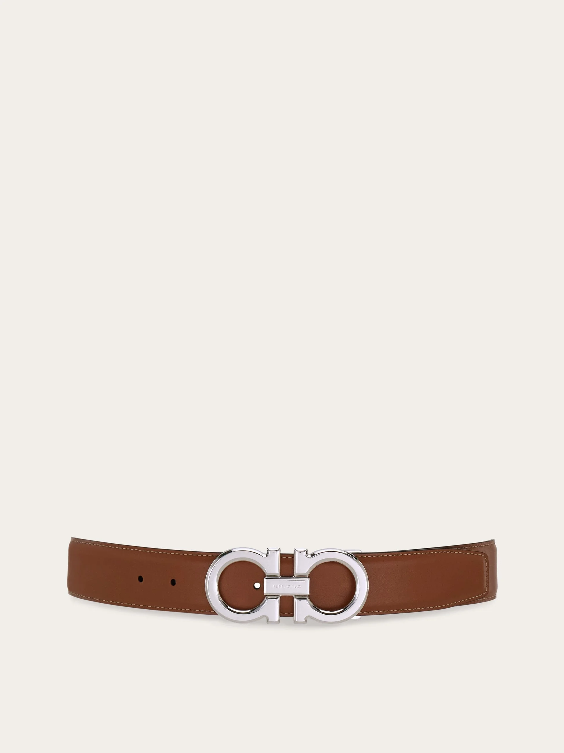 Keep it simple. This minimal look belt is the height of contemporary chic. Made of smooth calf leather, the strap is reversible for dual styling options. The palladium finish Gancini buckle sets off the look. The adjustable length allows for a more personalized fit and style. We invite you to check our size guide for more information. - height 1.3 IN - Composition: calfskin - Made in ITALY - Product code: 679710 785978