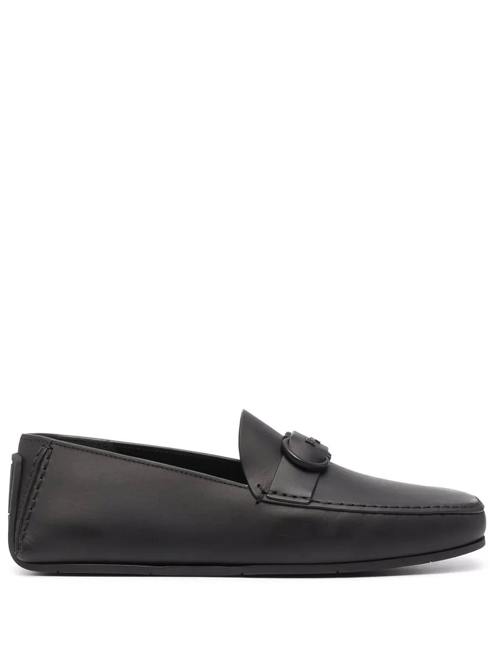 Gancini leather loafers Ferragamo's loafers are an ideal choice for events that require smart-casual dress codes. Balancing comfort and style in equal measure, this square-toe pair has sturdy rubber soles and is topped with a tonal Gancini plaque - a brand signature for over half a century. Made in Italy Composition Lining: Leather 100% Sole: Rubber 100% Outer: Leather 100% SIZE & FIT Measurement HEEL 0.59 in(1.5 cm) Sole height 0.39 in(1 cm)