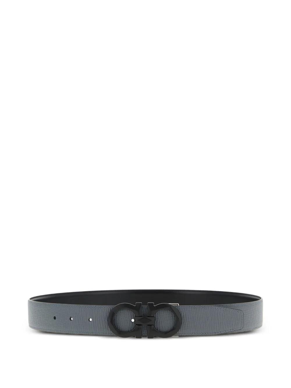 Gancini leather reversible belt Highlights - Grey and black - Textured leather - Reversible - Matte effect - Gancini buckle Made in Italy Composition Calf Leather 100% SIZE & FIT Measurement WIDTH 1.37 in(3.5 cm)