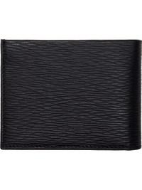 Hammered calfskin bifold wallet in black. · Inset logo hardware at face · Logo embossed at interior · Five card slots · Two patch pockets · ID window · Two note slots · Full moire lining · Silver-tone hardware · H3.5" x W4.25" Supplier color: Black