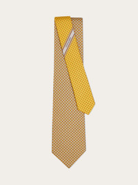 A double-sided design brings a playful splash of color to this pure silk tie, perfect for lightening up formal looks. The front features a delicate interplay of Gancini and envelope motifs, while the back opens up into a bolder pattern of colorful Gancini, a signature of the brand. - Composition: 100% silk - Made in ITALY - Product code: 351332 789218