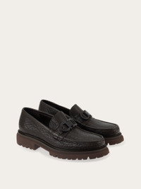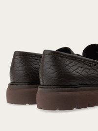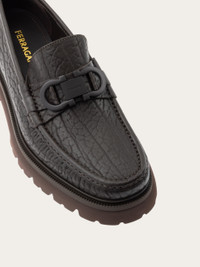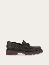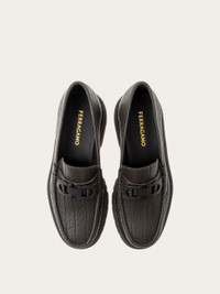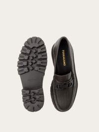 The rounded tip and stitched vamp give this loafer a contemporary feel. The calfskin leather undergoes a wash treatment which highlights its natural grain. A tonal buckle and lug sole complete the design. This shoe is made using the Tubular method which involves some stages of hand processing and stitching. - Composition: washed calfskin - Made in ITALY - Product code: 028249 788854