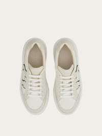 Low-top leather sneaker with suede details, inspired by 90s basketball shoes. Notice the signature Gancini motif with a 3D inlay effect on the side. Rubber sole with textured edges and custom tread. - Composition: calfskin leather and suede - Made in ITALY - Product code: 02A048 789066
