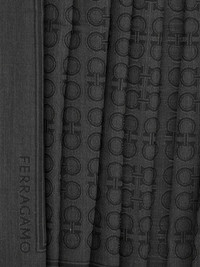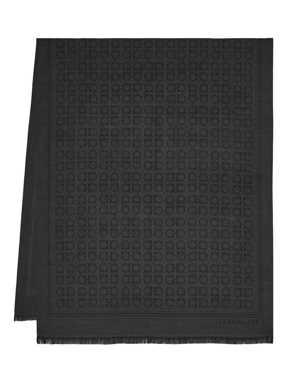 Gancini-motif fringed scarf Highlights - Dark grey - Rectangular design - All-over gancini motif - Logo detail - Fringed edges - Wool-silk blend Made in Italy Composition Wool 90%, Silk 10% SIZE & FIT Measurement LENGTH 66.92 in(170 cm) WIDTH 27.55 in(70 cm)