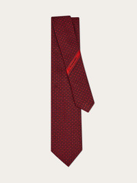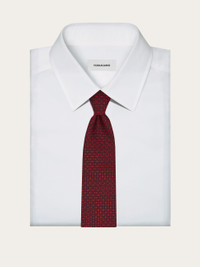 The rich texture of jacquard silk adds depth to this contemporary accessory with iconic inspiration. New pure silk tie featuring a series of Gancini outlines inside a geometric pattern. Width 7cm. - Composition: 100% silk - Made in ITALY - Product code: 351267 784500