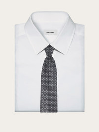 The rich texture of jacquard silk adds depth to this contemporary accessory with iconic inspiration. New pure silk tie featuring a series of Gancini outlines inside a geometric pattern. Width 7cm. - Composition: 100% silk - Made in ITALY - Product code: 351267 784501