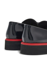 Gancini-ornament leather mocassins Highlights - Black/red - Calf leather - Patent finish - Gancini plaque - Contrasting border - Low block heel - Round toe - Slip-on style Made in Italy Composition Outer: CALFSKIN 100% Lining: CALFSKIN 89%, Goat Skin 11%
