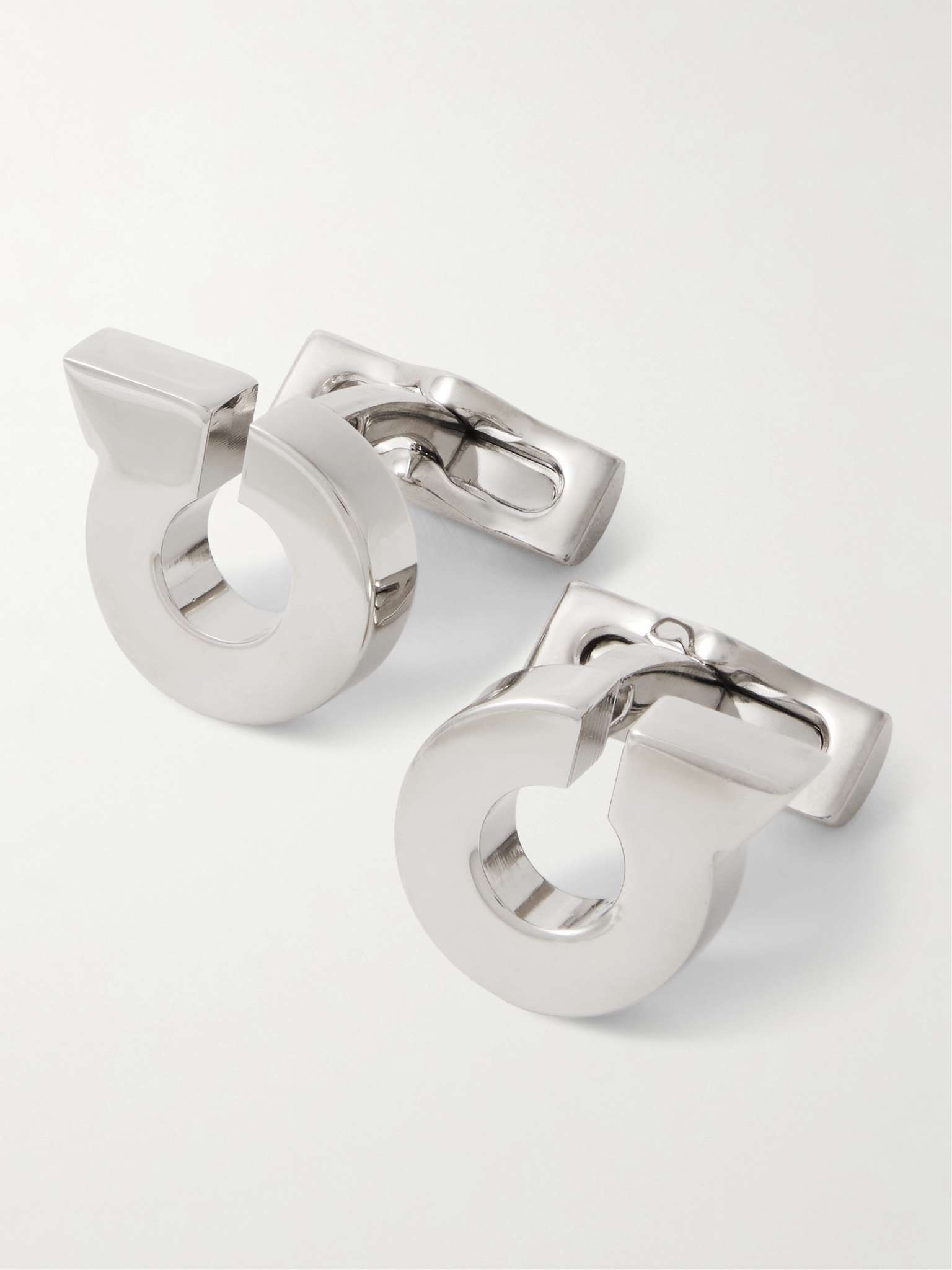 Gancini Logo-Engraved Palladium-Plated Cufflinks