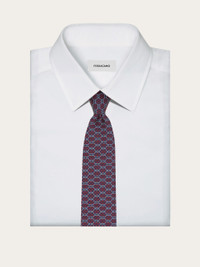 An iconic symbol of the brand, the Gancini takes center stage on this pure silk tie, featuring a two-tone pattern with a flowing effect. Crafted from soft, lustrous twill, it adds an elegant touch to the most formal outfits. - Composition: 100% silk - Made in ITALY - Product code: 351204 778439