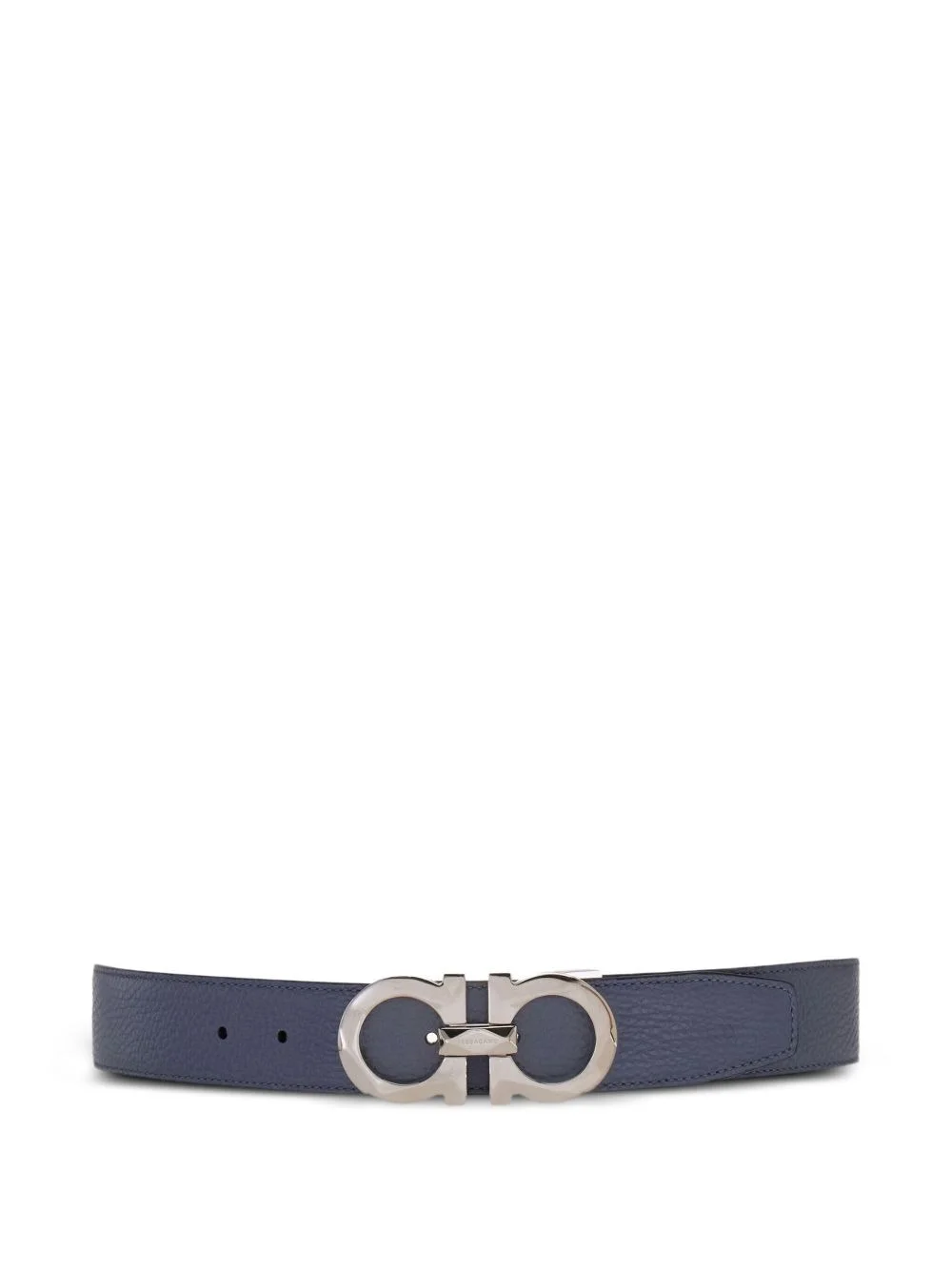 Gancini-buckle reversible belt Highlights - Dark-blue - Hammered calfskin - Reversible design - Gancini buckle - Adjustable length Made in Italy Composition CALFSKIN 100%