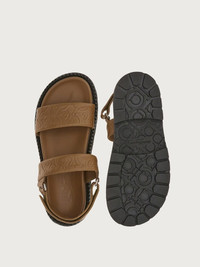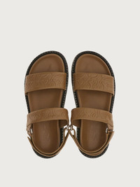 Trendy summer sandal with a gritty edge and fashionable flair: the construction is minimal, with a double Velcro strap on the toes. The soft, rich Italian calf leather is decorated with a three-dimensional Gancini pattern. The refinement of the workmanship creates a bold contrast with the chunky rolled welt , and with the rubber sole with a custom tread. Ergonomic inner sole for all day comfort. - Composition: calf leather - Made In ITALY